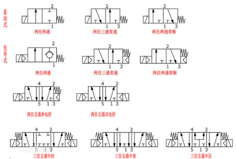 电磁阀符号是指对电磁阀功能进行描述的示意图,通常应用于气动系统设计及产品标识上,以供气动系统设计人员及电磁阀使用者了解产品功能。在设计过程中,常常需要看气路图。各种电磁阀化身为各自相应的气动符号出现在图纸上,这种表示方式,就是电磁阀符号。
